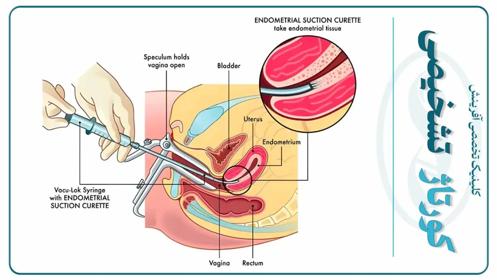 پزشک با ابزار مخصوصی مقداری از پوشش داخلی رحم را برداشت میکند